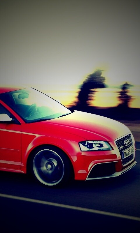«Красная Audi модели RS3 на дороге»