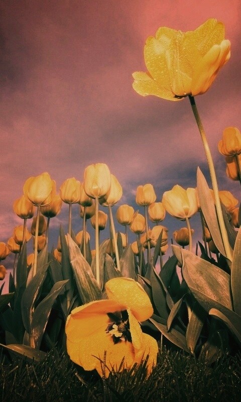 Обои для рабочего стола «Жёлтые тюльпаны» 480х800 с фильтром earlybird (оригинал 2560х1600)