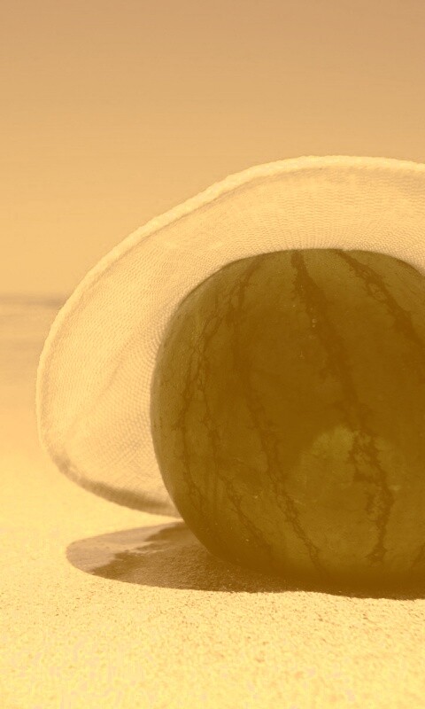 «Арбуз в летней шляпке на пляже»
