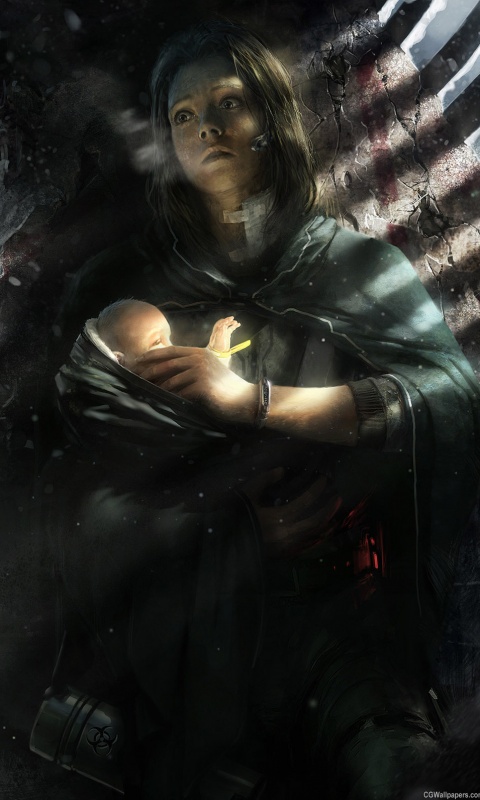 «Девушка с ребенком прячется от монстра»