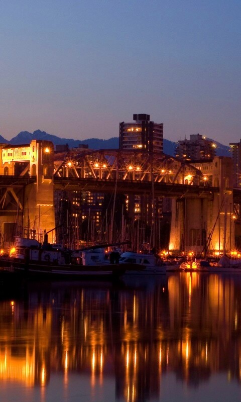 «Мост и катера на закате»