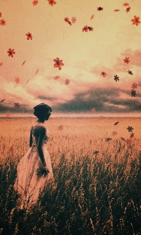 «Грустная девушка в поле травы»