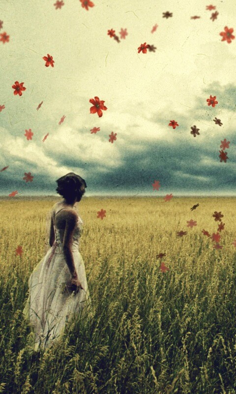 «Грустная девушка в поле травы»