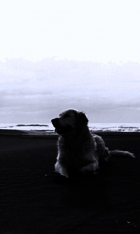 «Красивая собака на оранжевом песке»