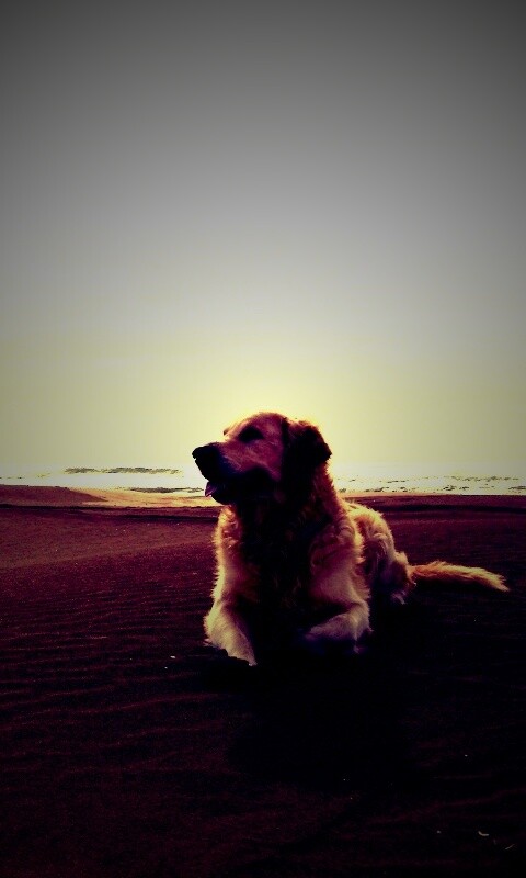 «Красивая собака на оранжевом песке»
