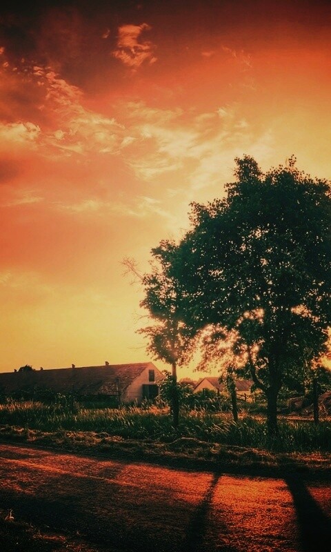 Обои для рабочего стола «Закат на фоне дерева в HDR» 480х800 с фильтром earlybird (оригинал 1920х1200)