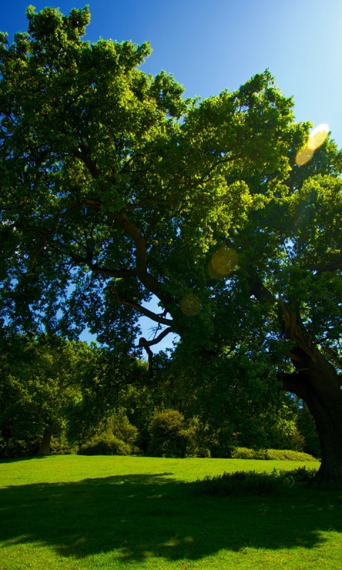 «Большое зеленое дерево на лужайке»