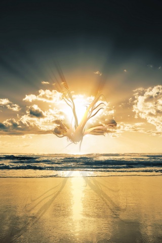 «Абстрактные перья на фоне заката»