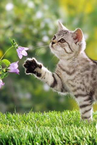 «Котенок играет с цветами»