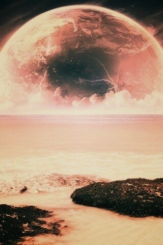 «Огромная луна над океаном»