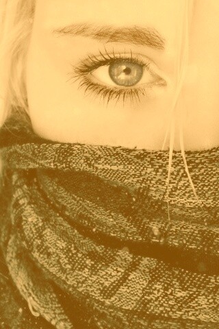 «Блондинка с шарфом на лице»