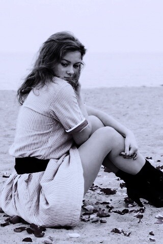 «Девушка среди лепестков на пляже»