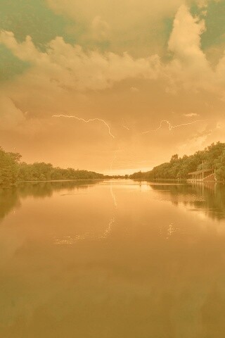 «Молнии на фоне заката, стандартные обои mac»