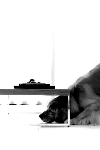 «Большая собака под маленький столик»