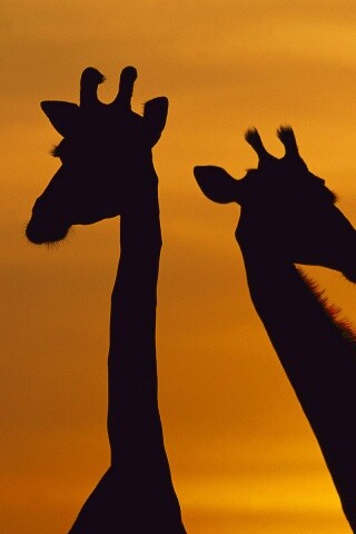 «Три силуэта жирафов на фоне неба»
