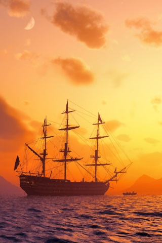 «Трехпалубный парусный корабль на закате»