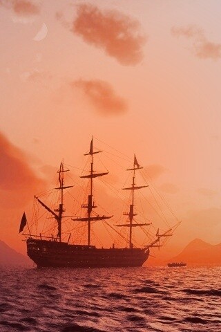 «Трехпалубный парусный корабль на закате»