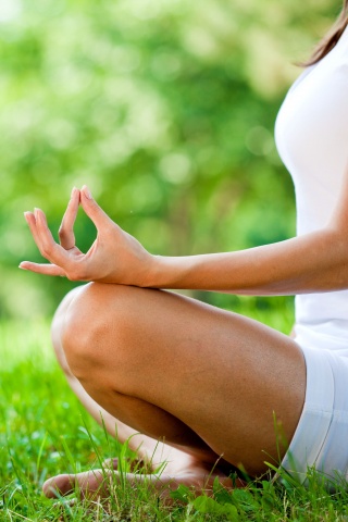 «Девушка медитирует в позе лотоса на траве»