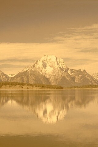 «Вид на горы за озером»