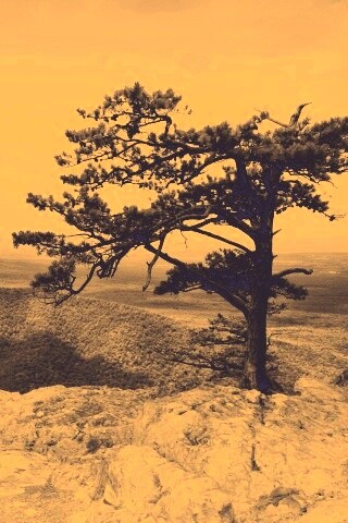 «Горное дерево в черно-белых тонах»