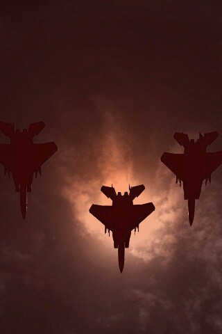 «Ряд истрибителей на фоне солнца»