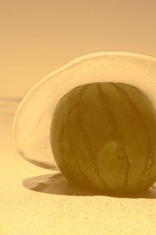«Арбуз в летней шляпке на пляже»