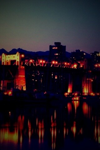 «Мост и катера на закате»