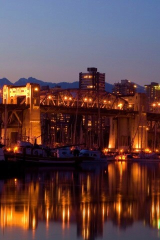 «Мост и катера на закате»