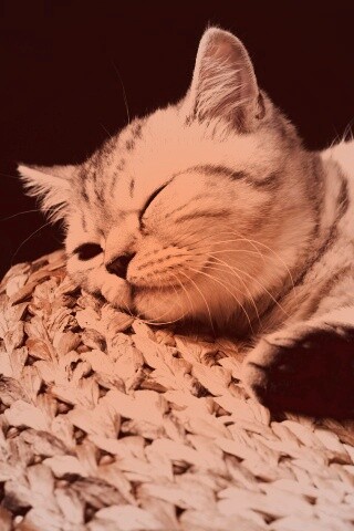 «Пушистый кот спит на корзине»