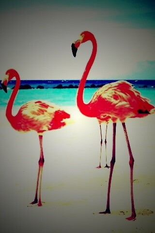 «Розовые фламинго на пляже»