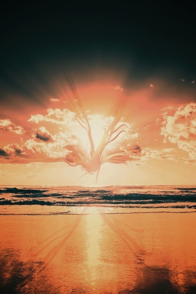 «Абстрактные перья на фоне заката»