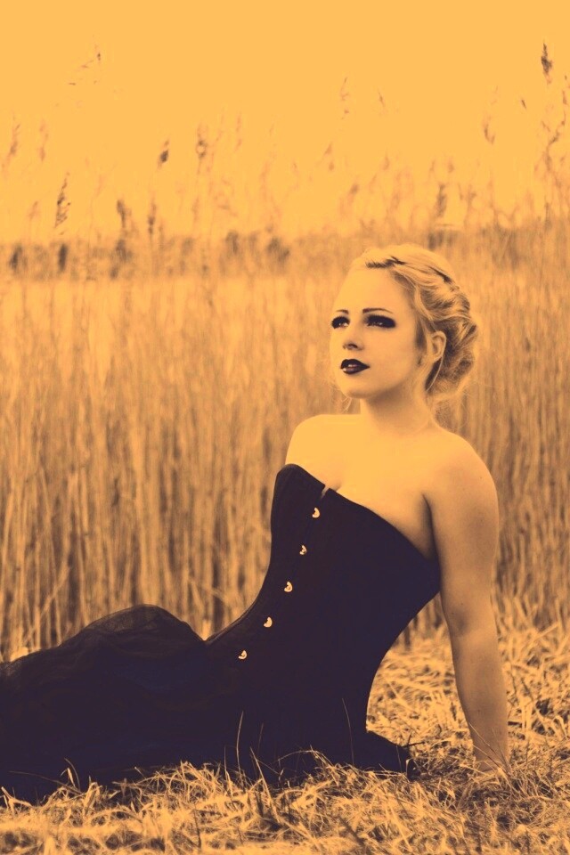 «Девушка на траве в черном корсете»