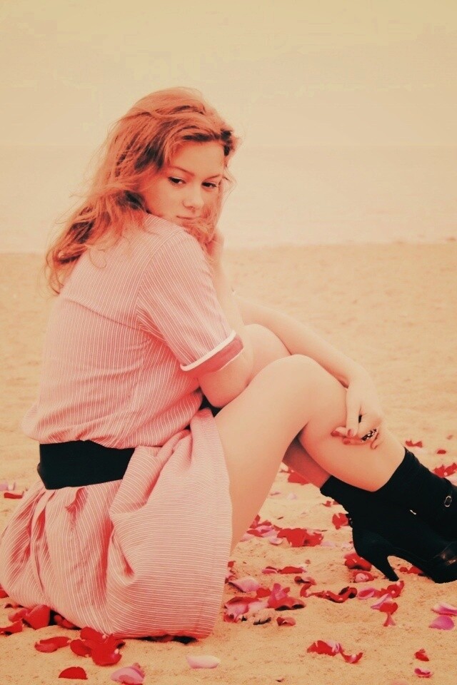 «Девушка среди лепестков на пляже»