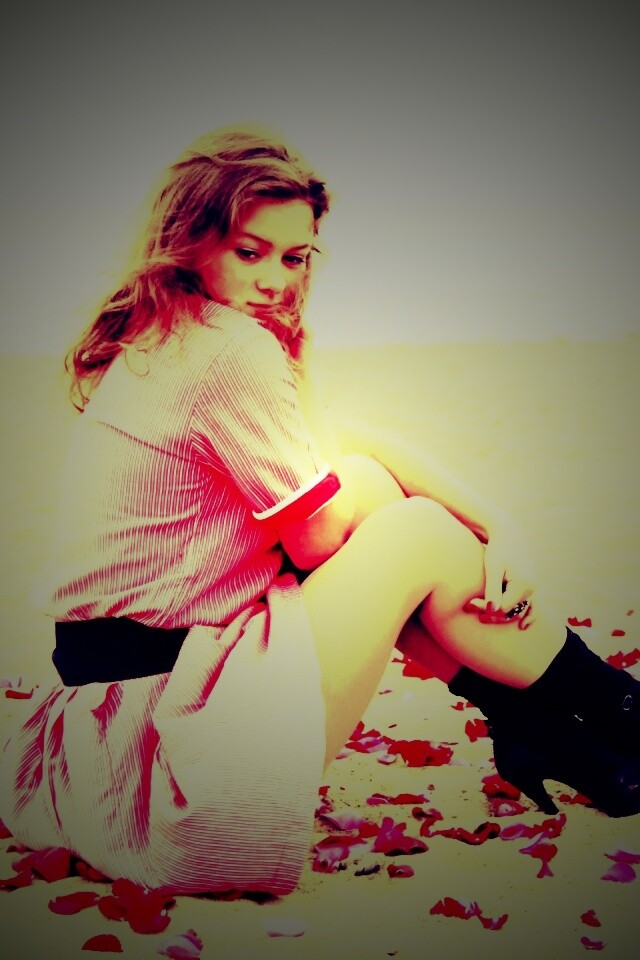 «Девушка среди лепестков на пляже»