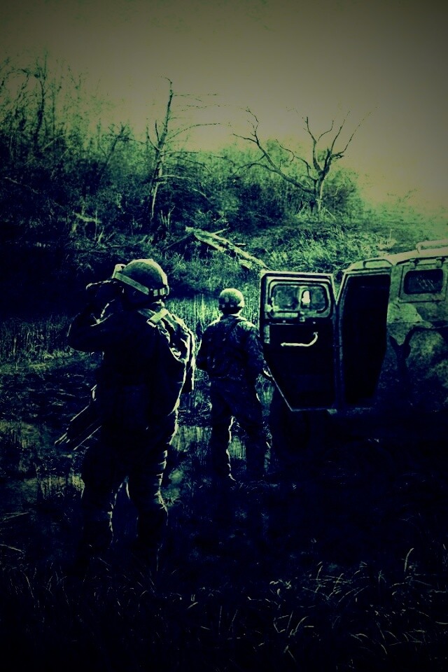 «Солдаты из сталкера на болоте»