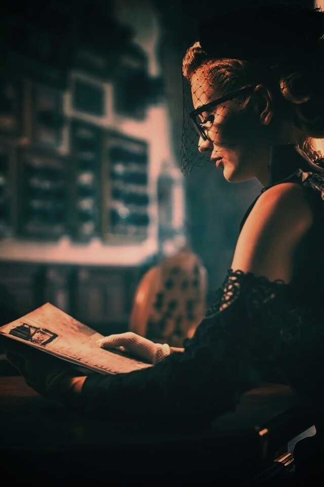 «Витажная девушка в кафе»