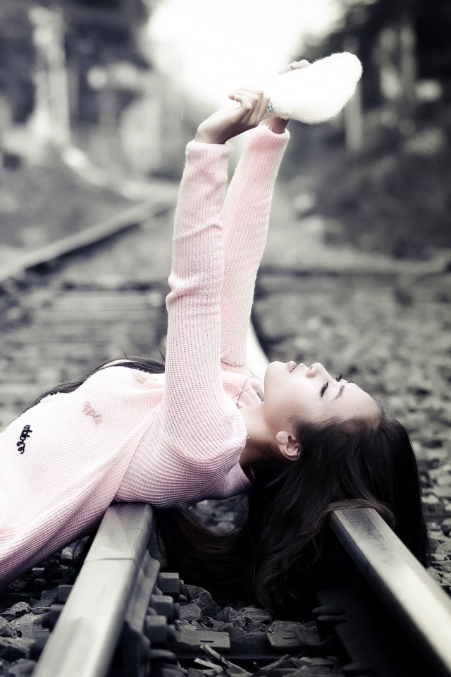 «Модель на железнодорожных путях»