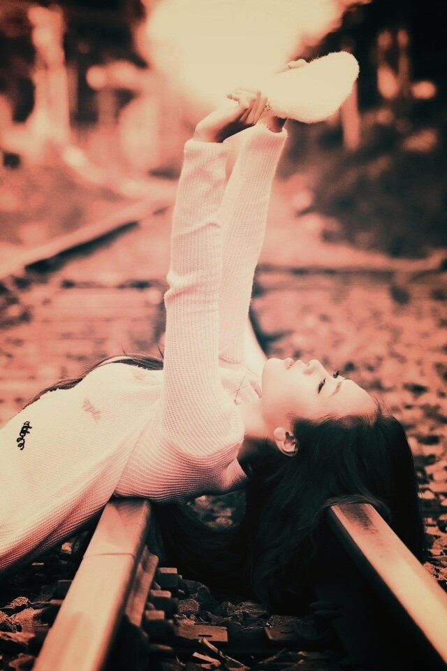 «Модель на железнодорожных путях»
