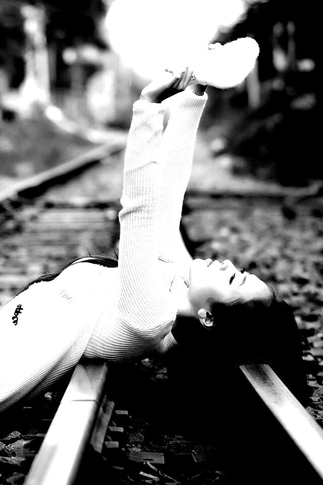 «Модель на железнодорожных путях»