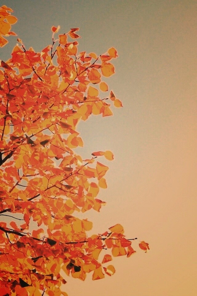 «Ветви с пожелтевшими листьями на фоне неба»