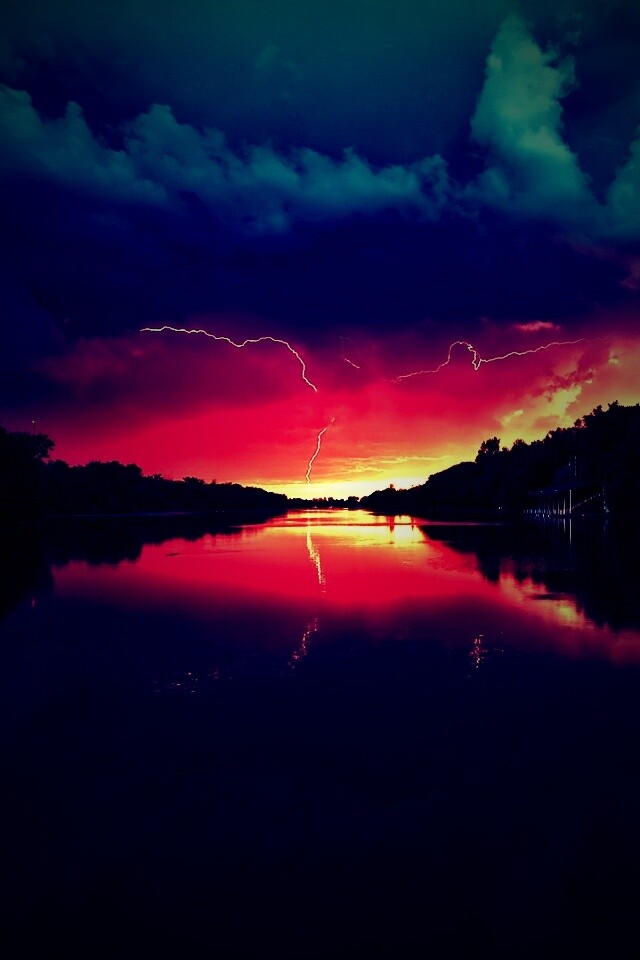 «Молнии на фоне заката, стандартные обои mac»