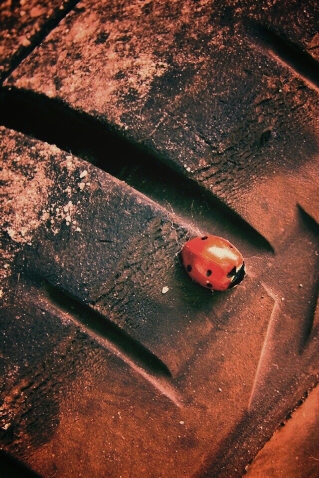 «Божья коровка на автомобильной покрышке»