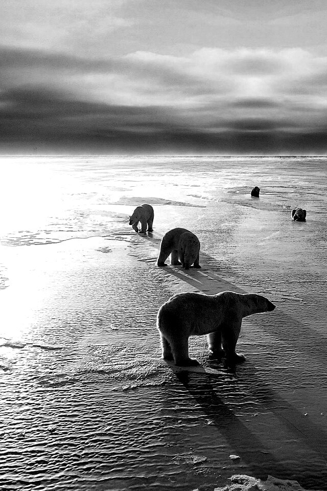 Обои для рабочего стола «Полярные медведи» 640х960 с фильтром inkwell (оригинал 1920х1200)
