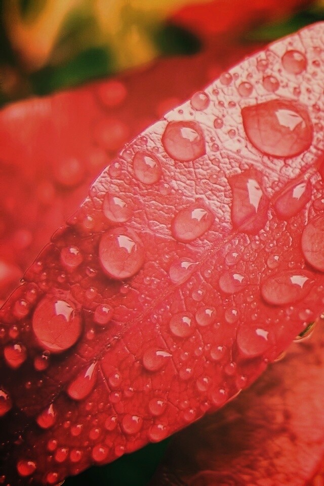 «Капли росы на красных листьях»