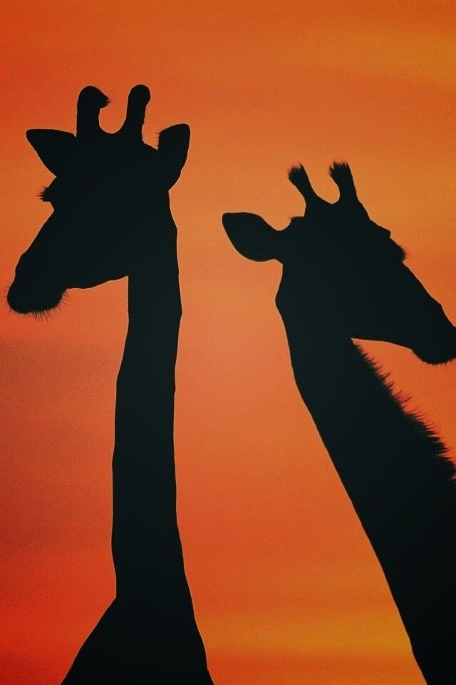 «Три силуэта жирафов на фоне неба»