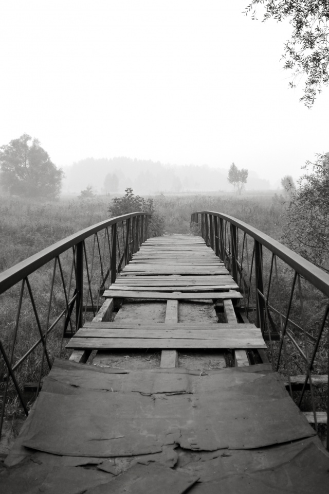 «Старый мост на черно-белом фото»