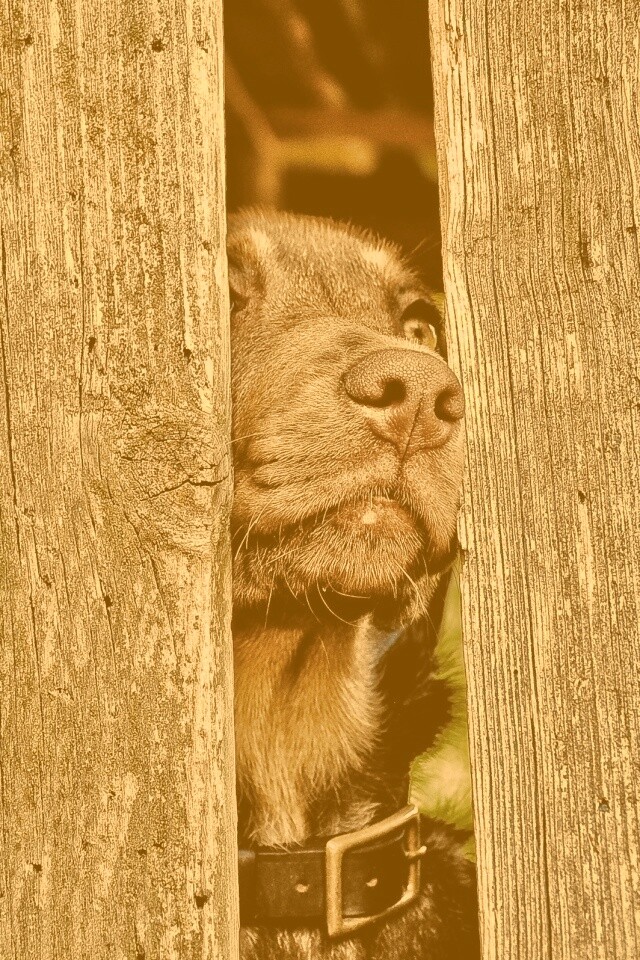 «Собака выглядывает из-за забора»