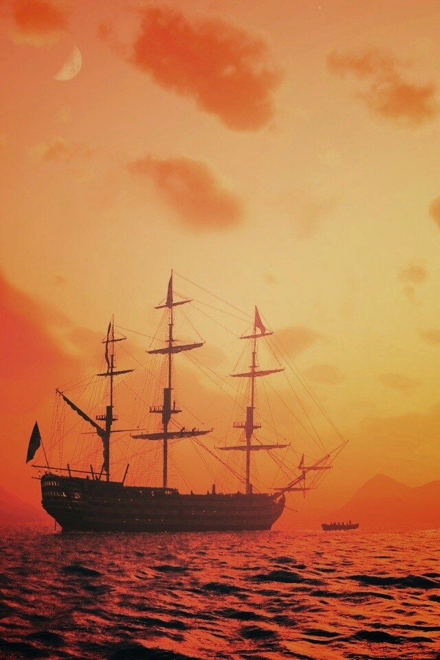 «Трехпалубный парусный корабль на закате»