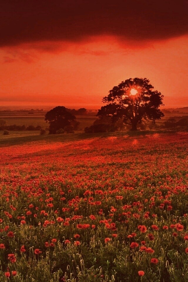 «Закат на поле красных цветов»