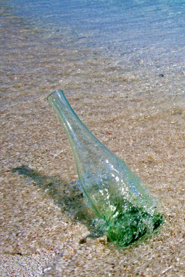 «Бутылка в песке у воды»